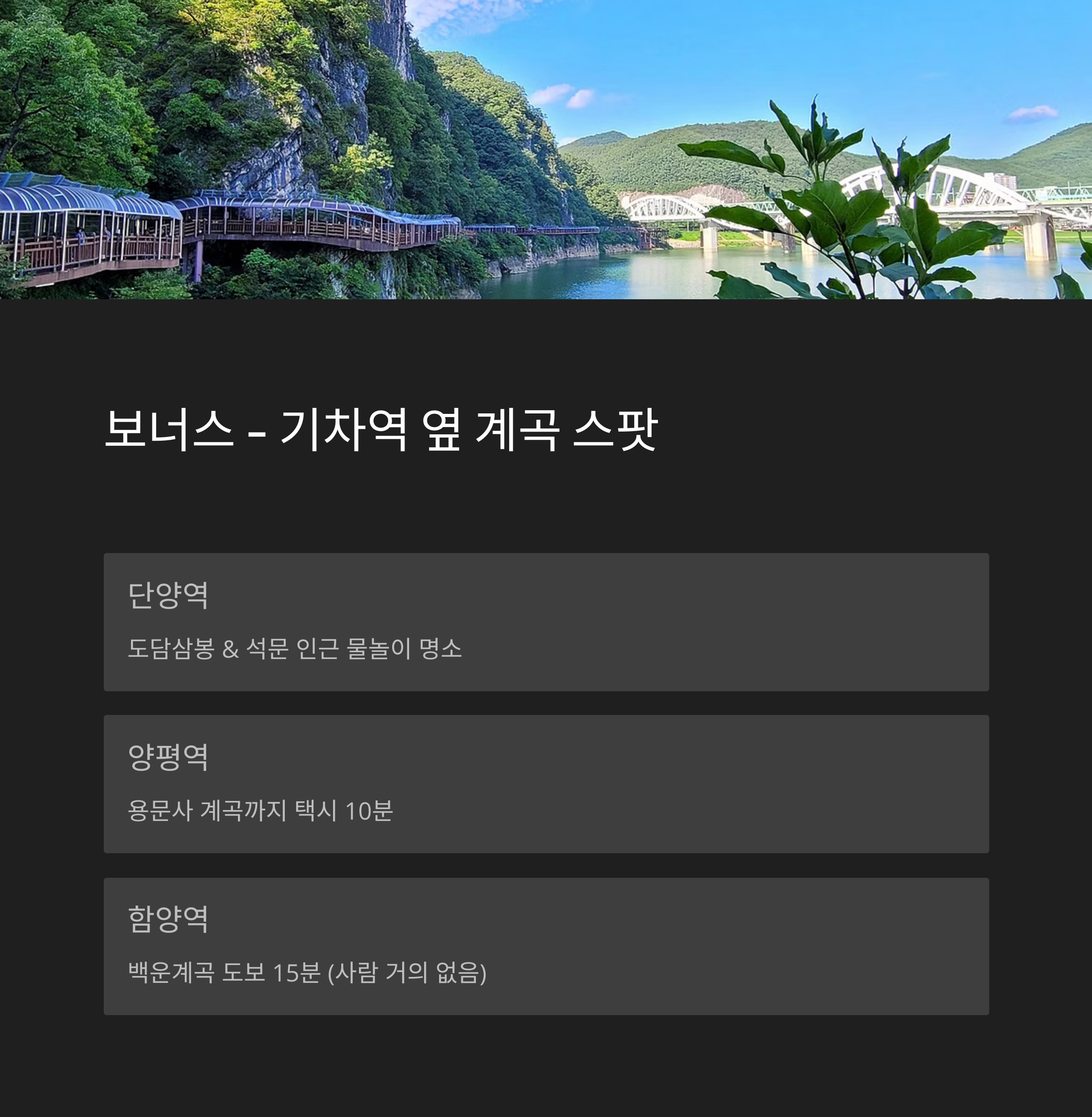 ⑤ 보너스 – 기차역 옆 계곡 스폿 3줄 요약